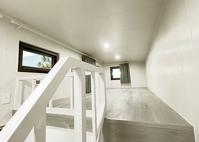 Cider Box Tiny House został starannie zaprojektowany z myślą o parach i małych rodzinach, oferując dobrze przemyślaną aranżację, która maksymalnie wykorzystuje każdy róg swojej powierzchni 27,58 m2.Jedną z jego szczególnych cech jest połączenie dwóch oddzielnych loftów spającychNiezależnie od tego, czy poszukują spokojnego snu, czy spokojnego schronienia, te lofty stanowią idealne miejsce do relaksu.