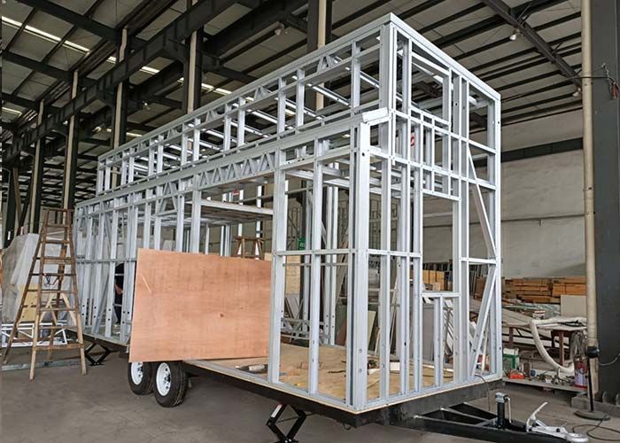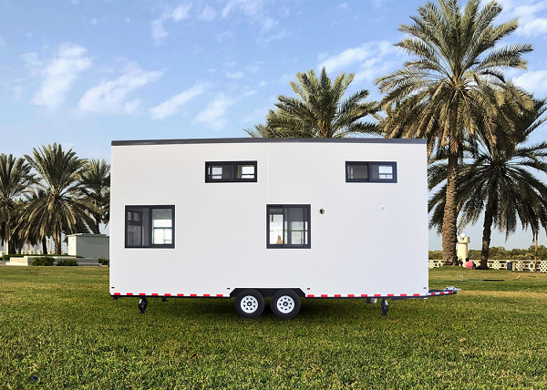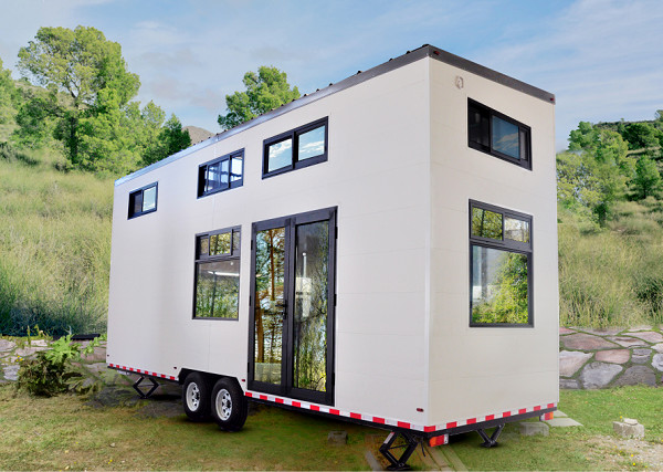 Prefabrykowany domek na kółkach z drzwiami aluminiowymi