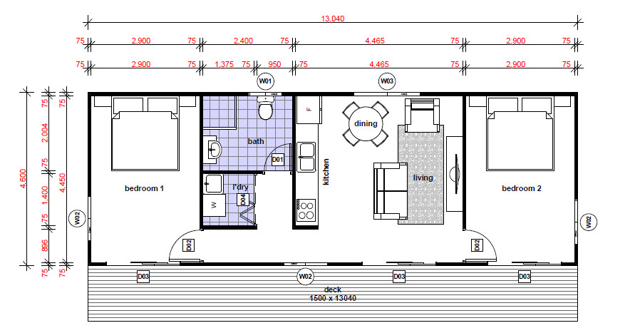 Cechy | Deepblue Australia Granny Flat oparty jest na systemie ramy stalowej o lekkim wymiarze z zielonym, niskoemisyjnym materiałem wykończenia |